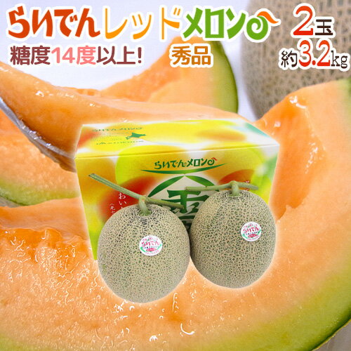 - 北海道 赤肉メロン ”らいでんレッドメロン” 2玉 約3.2kg 化粧箱【予約 7月下旬以降】 送料無料