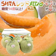 - 北海道 赤肉メロン ”らいでんレッドメロン” 4、5玉 約8kg 産地箱【予約 7月下旬以降】 送料無料